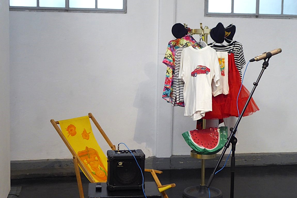 Installation, Video, Keramik, Zeichnung, Karaoke Happening