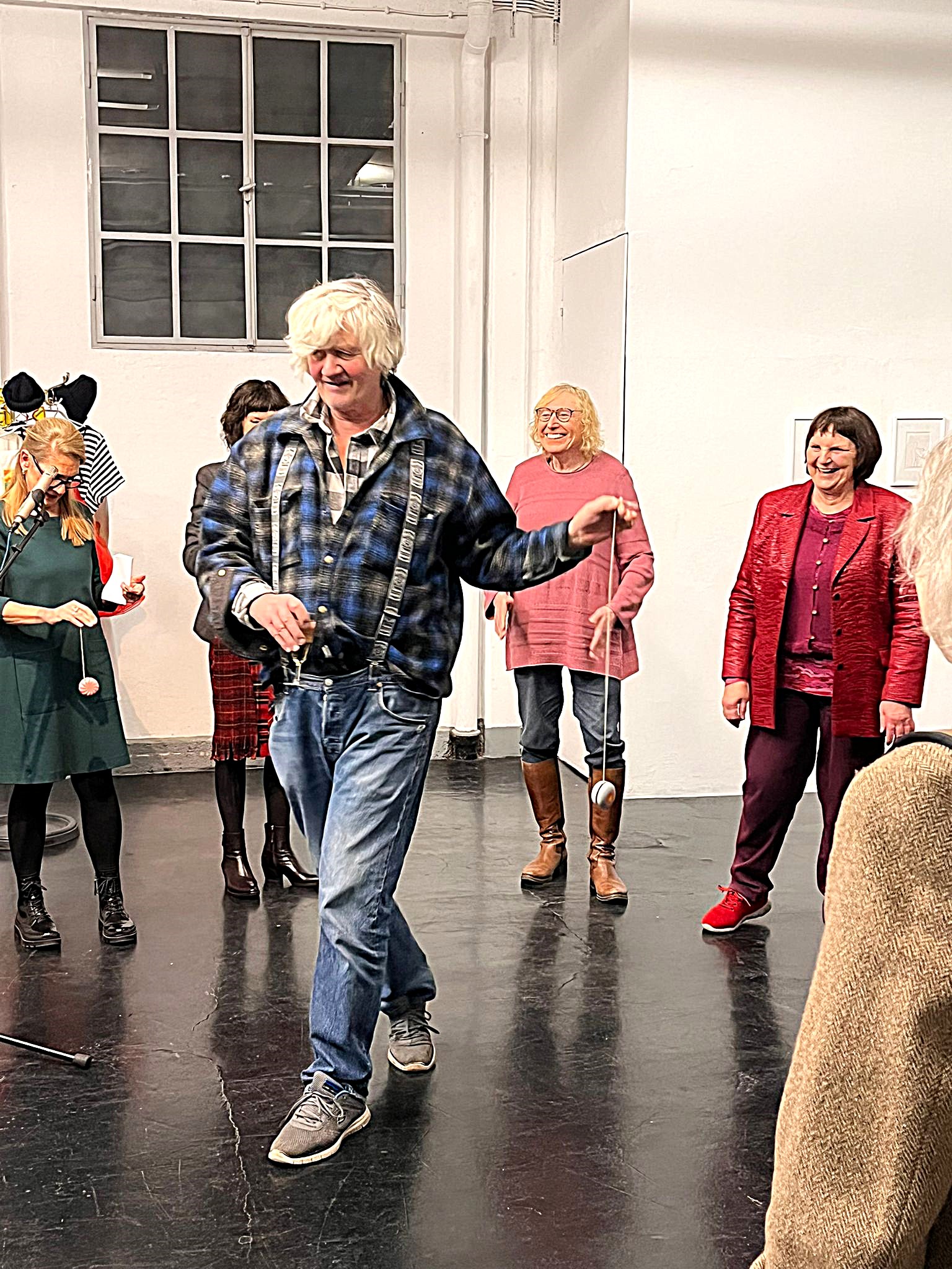 Lachyoga Session zum Nikolaus mit Besuchern und Lachyogis.